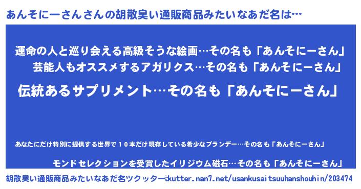 | ピコ太郎風あだ名 | 『アン次郎』『ピア四郎』『アア太郎』 |