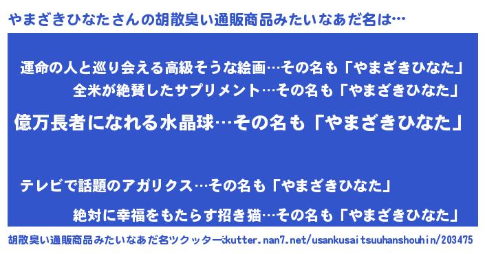 | 恥ずかしいあだ名 | 『プリティーやまざきひなた』『やまちん』 |