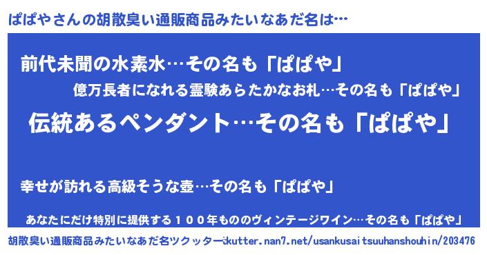 | 意味不明あだ名 | 『とにかく怪しいぱぱや』 |