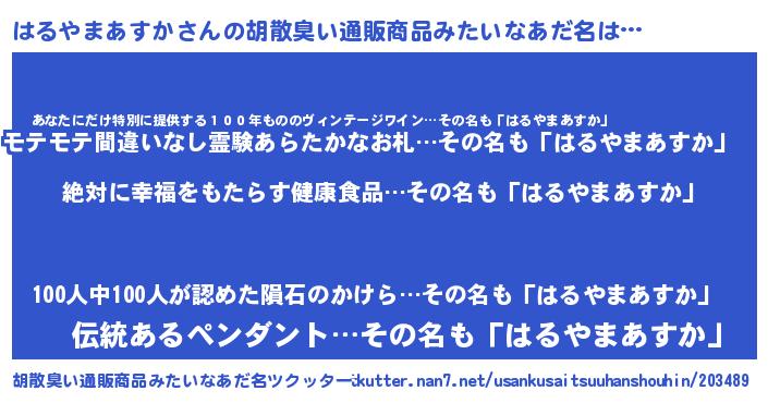 | ヘコむあだ名 | 『はるやまあすか(笑)』『はるお』 |