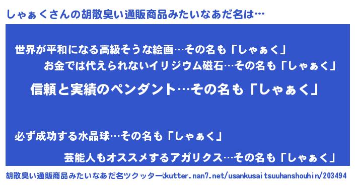 | 意味不明あだ名 | 『しいたけ科しゃぁく属』『自称しゃぁく』 |