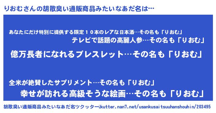 | 意味不明あだ名 | 『ペロリンりおむ』『りおむフォーエバー』 |