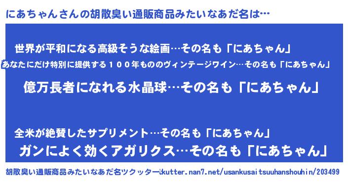 | ピコ太郎風あだ名 | 『ニコ史郎』『ピニ二郎』『ニア次郎』 |