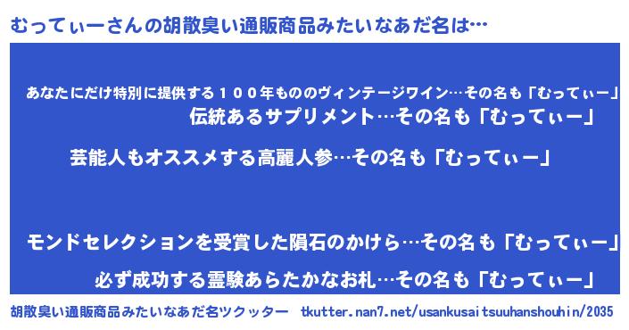 | 男性向けラノベタイトル風あだ名 | 『うちのむってぃーが世界を掌握している!』 |