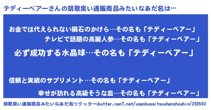 | 恥ずかしいあだ名 | 『プリティーテディーベアー』 |