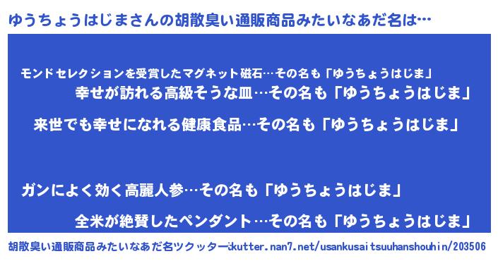 | 意味不明あだ名 | 『永久保存ゆうちょうはじま』 |