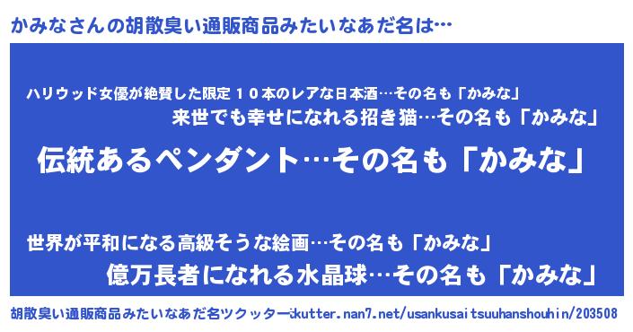 | 意味不明あだ名 | 『とにかく怪しいかみな』 |