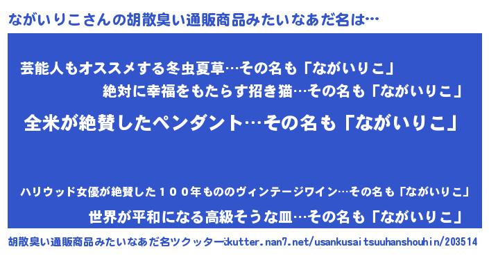 | 男性向けラノベタイトル風あだ名 | 『ながいりこの嫁は女の子じゃないと思った?』 |