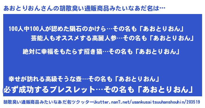 | 意味不明あだ名 | 『永久保存あおとりおん』 |