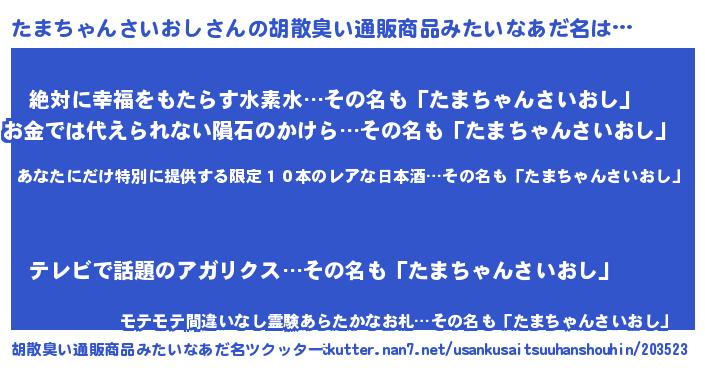 | 意味不明あだ名 | 『住所不定無職たまちゃんさいおし(40歳)』 |