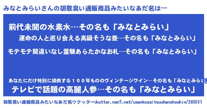 | ヒーロー風カッコイイあだ名 | 『スーパーミナトミライ』『仮面ミナダー』 |