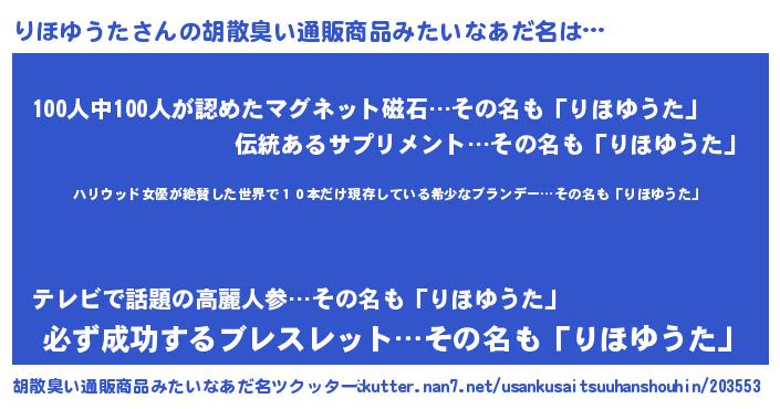 | 意味不明あだ名 | 『住所不定無職りほゆうた(81歳)』 |