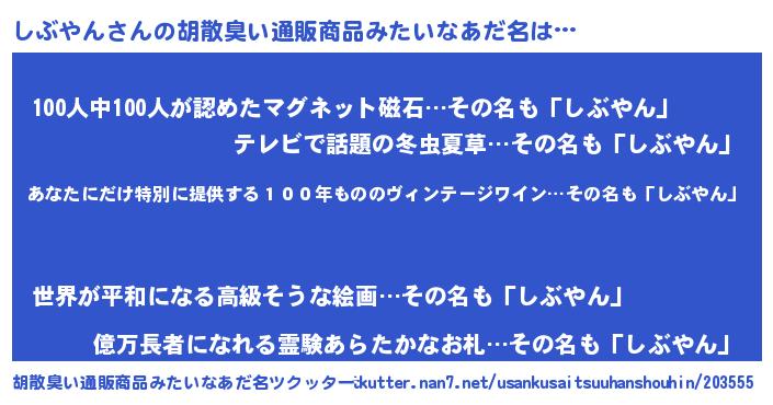 | 意味不明あだ名 | 『住所不定無職しぶやん(5歳)』 |