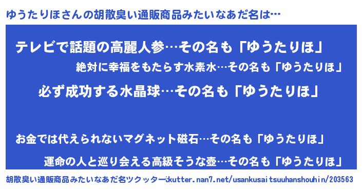 | ヘコむあだ名 | 『ゆうにゅー』『つくし』『ゆうお』 |