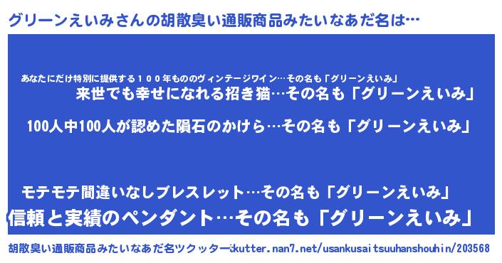 | ヒーロー風カッコイイあだ名 | 『正義の使者グリーンえいみ』 |