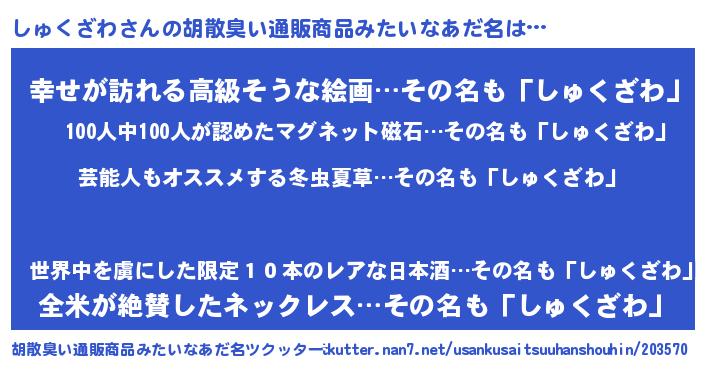 | 意味不明あだ名 | 『自称しゅくざわ』 |