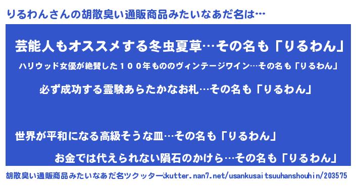 | 意味不明あだ名 | 『ペロリンりるわん』『自称りるわん』 |