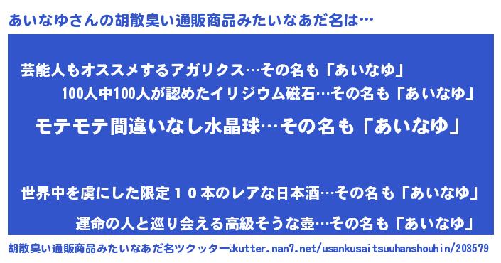 | ヘコむあだ名 | 『あいにゅー』『酢こんぶ』『あいお』 |
