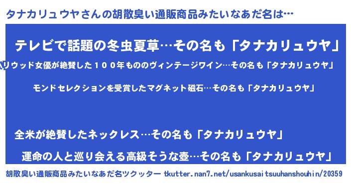 | 欧米人風あだ名 | 『トリンドルタナカリュウヤ』 |