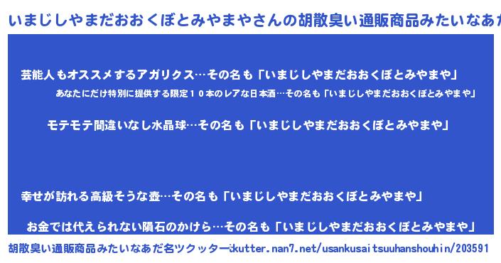 | 肩書あだ名 | 『いまじしやまだおおくぼとみやまや店長』 |