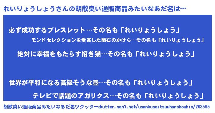 | ヘコむあだ名 | 『れいりょうしょう(笑)』『れいにー』 |