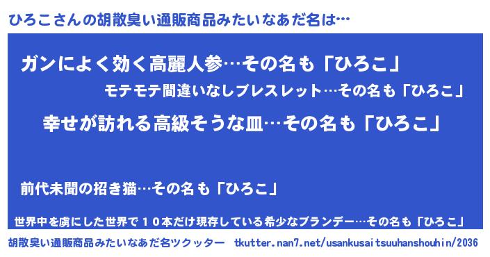 | 意味不明あだ名 | 『ひろこフォーエバー』『自称ひろこ』 |