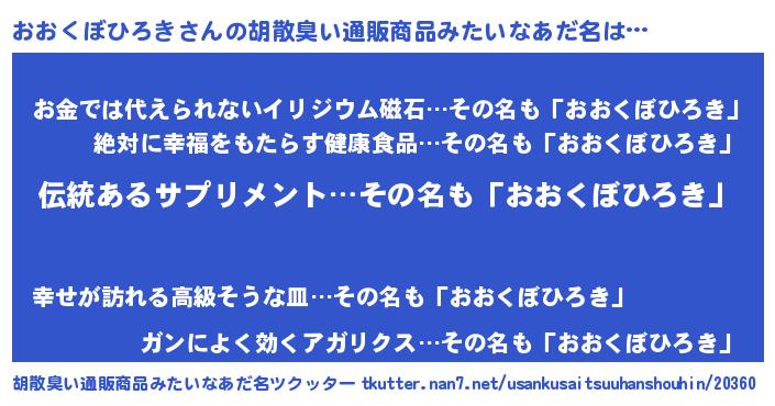| ヘコむあだ名 | 『おおを』『おおくぼひろき(笑)』 |