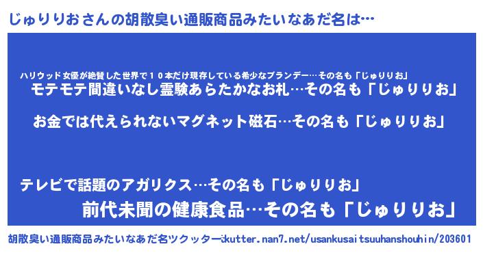 | 欧米人風あだ名 | 『アンジェラ・じゅりりお』 |