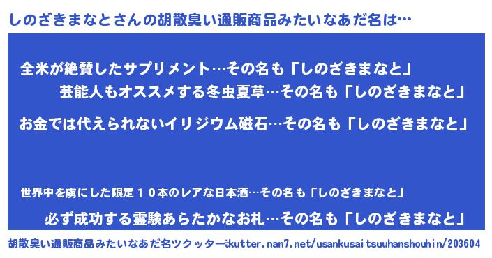 | 男性向けラノベタイトル風あだ名 | 『ノーゲーム・ノーシノザキマナト』 |