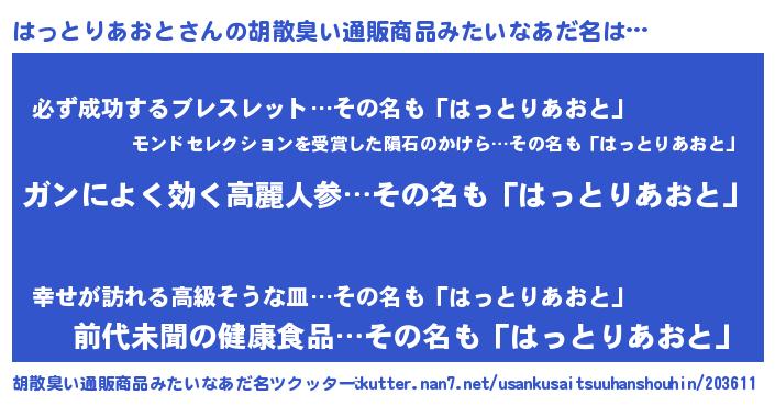 | 欧米人風あだ名 | 『トリンドルはっとりあおと』 |