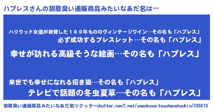 | 意味不明あだ名 | 『ハプレスフォーエバー』『自称ハプレス』 |