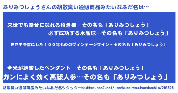 | 意味不明あだ名 | 『住所不定無職ありみつしょう(11歳)』 |