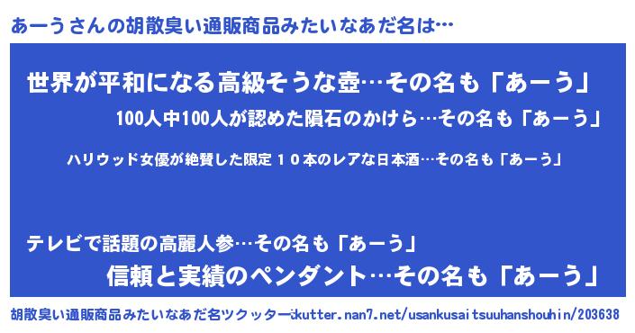 | 欧米人風あだ名 | 『アンジェラ・あーう』『ウサインあーう』 |