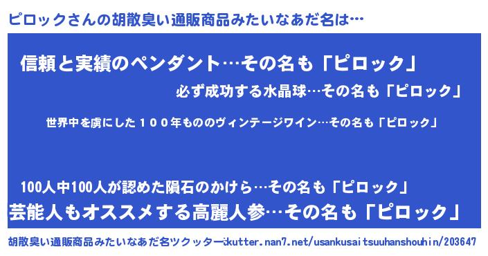 | 意味不明あだ名 | 『住所不定無職ピロック(5歳)』 |