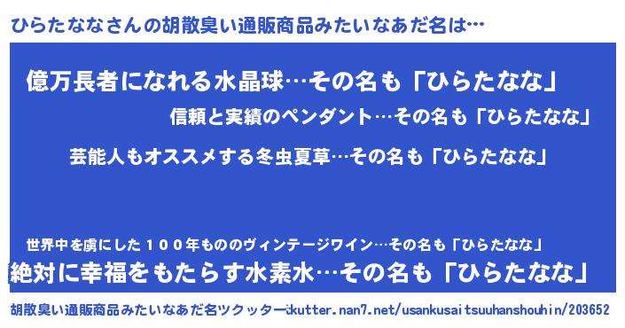 | ヘコむあだ名 | 『ひらもー』『ひらたなな(笑)』 |