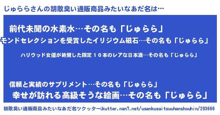| 料理風あだ名 | 『じゅららのカルパッチョ風』 |