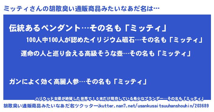 | 意味不明あだ名 | 『ミッティフォーエバー』『自称ミッティ』 |