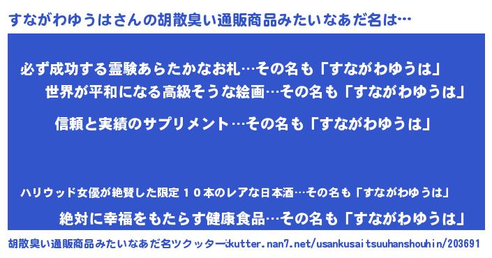 | 意味不明あだ名 | 『とにかく怪しいすながわゆうは』 |
