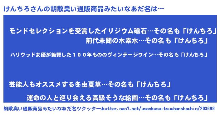 | 意味不明あだ名 | 『住所不定無職けんちろ(7歳)』 |