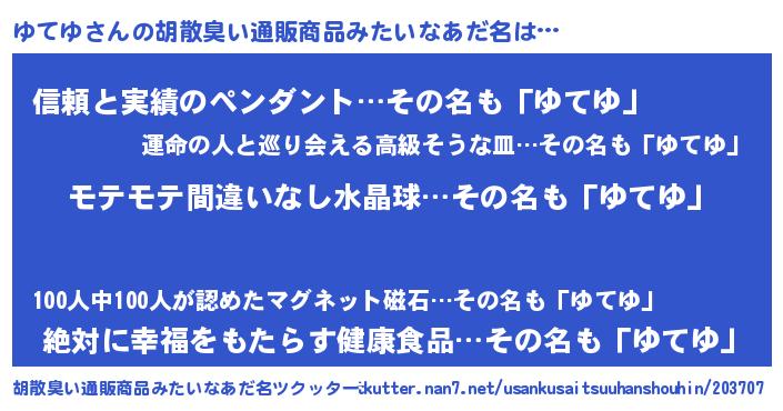 | 意味不明あだ名 | 『ペロリンゆてゆ』『永久保存ゆてゆ』 |