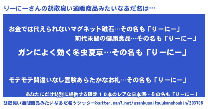 | 意味不明あだ名 | 『自称りーにー』『永久保存りーにー』 |