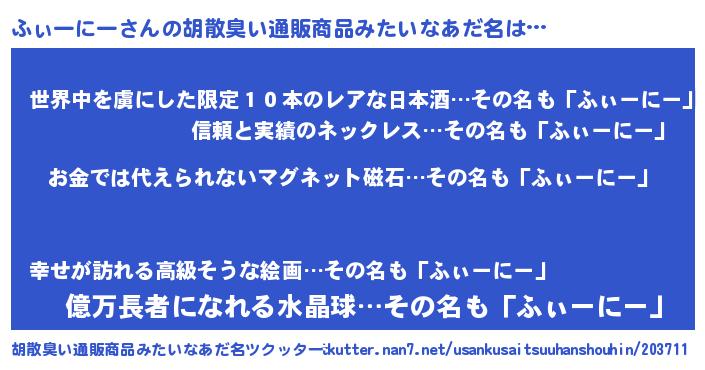 | ヘコむあだ名 | 『ふぃにー』『ふぃっ子』『レバニラ』 |