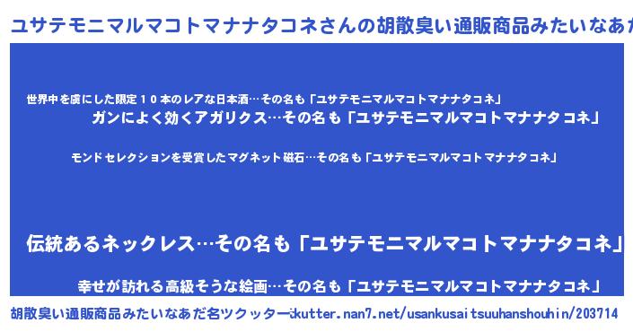 | 男性向けラノベタイトル風あだ名 | 『ノーゲーム・ノーユサテモニマルマコトマナナタコネ』 |