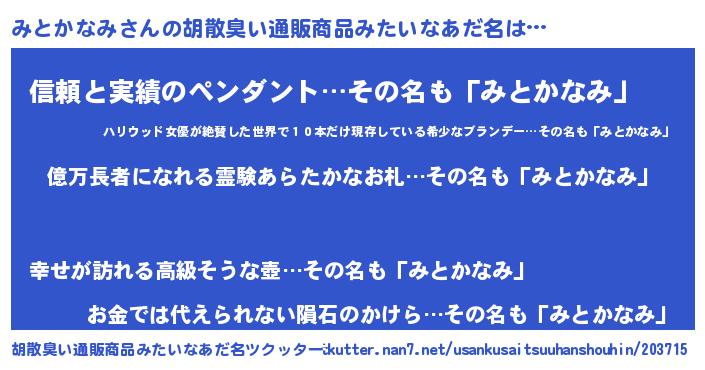 | 伝説のあだ名 | 『封印されしスナイパーみとかなみ』 |