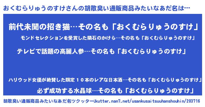 | ヘコむあだ名 | 『おくむらりゅうのすけ(小並感)』 |