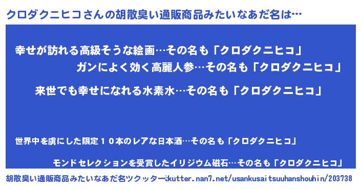 | 意味不明あだ名 | 『永久保存クロダクニヒコ』 |