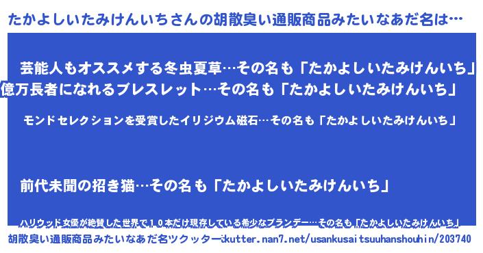 | 伝説のあだ名 | 『救世主となる占い師たかよしいたみけんいち』 |