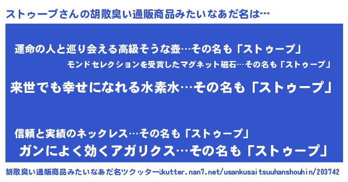 | 意味不明あだ名 | 『永久保存ストゥープ』『自称ストゥープ』 |