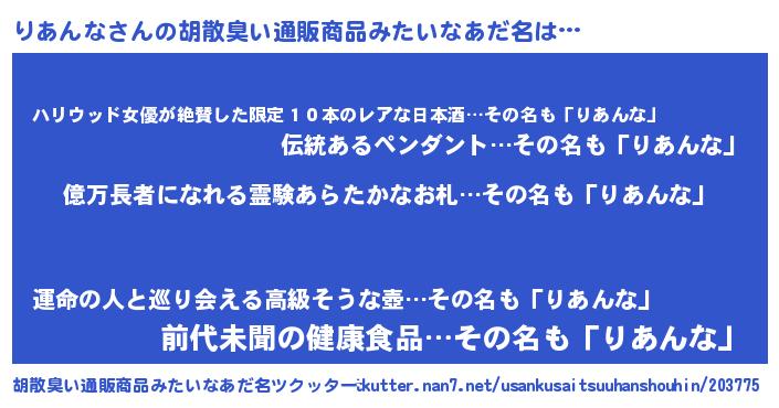 | 恥ずかしいあだ名 | 『プリティーりあんな』『りあちん』 |