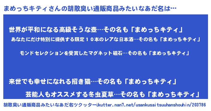 | ヒーロー風カッコイイあだ名 | 『慈愛の使者まめっちキティ』 |